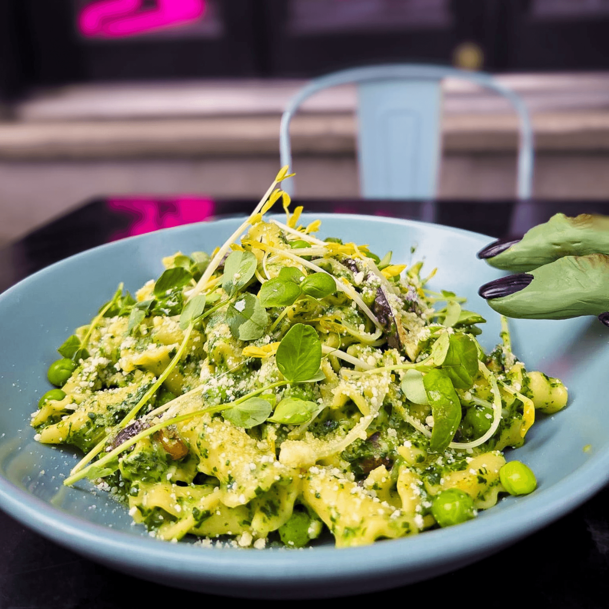 Monster Vegan is a true vibe! It is an all-vegan (obviously) restaurant in Philadelphia, PA. A favorite among many locals, local-ishs, and beyond! It is true to its name with a ‘monster’ theme and showing clips and full-length classic scary movies. The food is incredible- a unique array of options sure to suit any taste for both vegans and non-vegans! (My husband loves it and he is not vegan). We especially love the seitan wings! Entrees wise there are so many options to choose from! F There are salads, crafted sandwiches, pastas and more. They also have drinks and unique cocktails and mock-tails. I personally don’t drink and don’t even usually go for a non alcoholic version, but my friends that do always rave about them. I highly recommend this spot if you’ve never been! You will want to come back again and again, trust me!🫶🏻